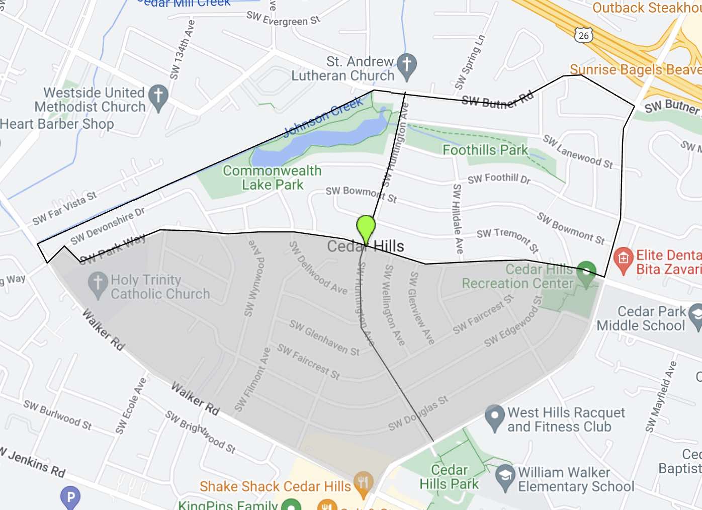 If this is the kind of region we’re looking for, great! This would be the full Cedar Hills area. If this area is too big for the use case, continue on.
