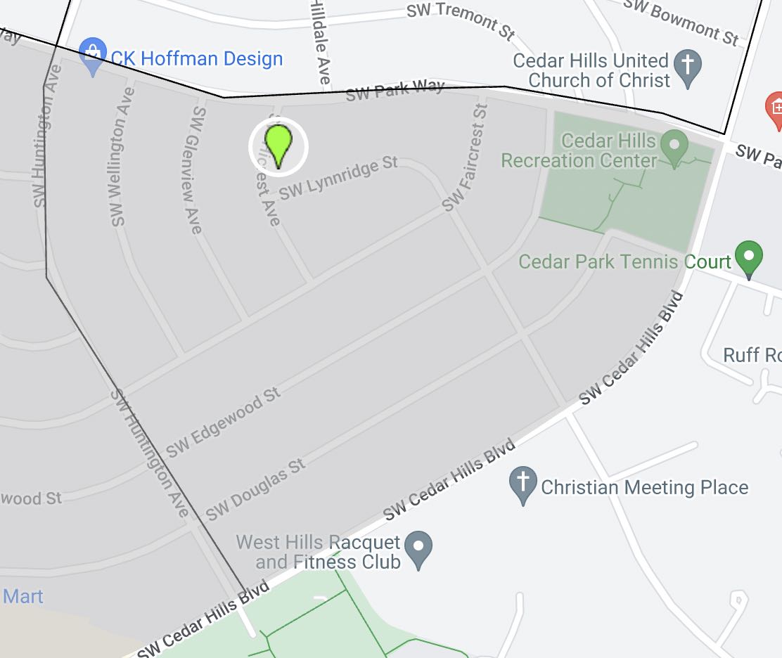Zooming out a bit more we can see that this area has been designated Cedar Hills. When this happens, that’s great! It helps give us more information.
