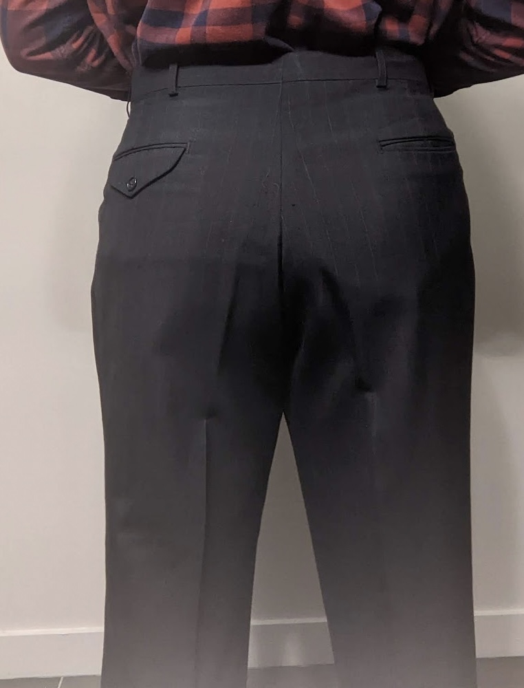 Attempt at tailoring pants. Success. Small pucker. First properly waisted pants EVER. VERY excited about them!!! Featured in later article: How to Get Men’s Pants for Dancing 5 or 6 attempts at getting this right. Very forgiving.